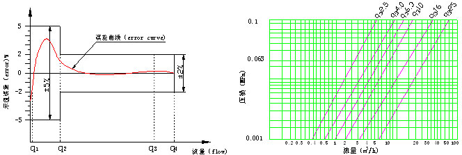 示值誤差限與流量曲線(xiàn)FLOW-ERROR CURVE 壓力損失曲線(xiàn) Pressure loss curve